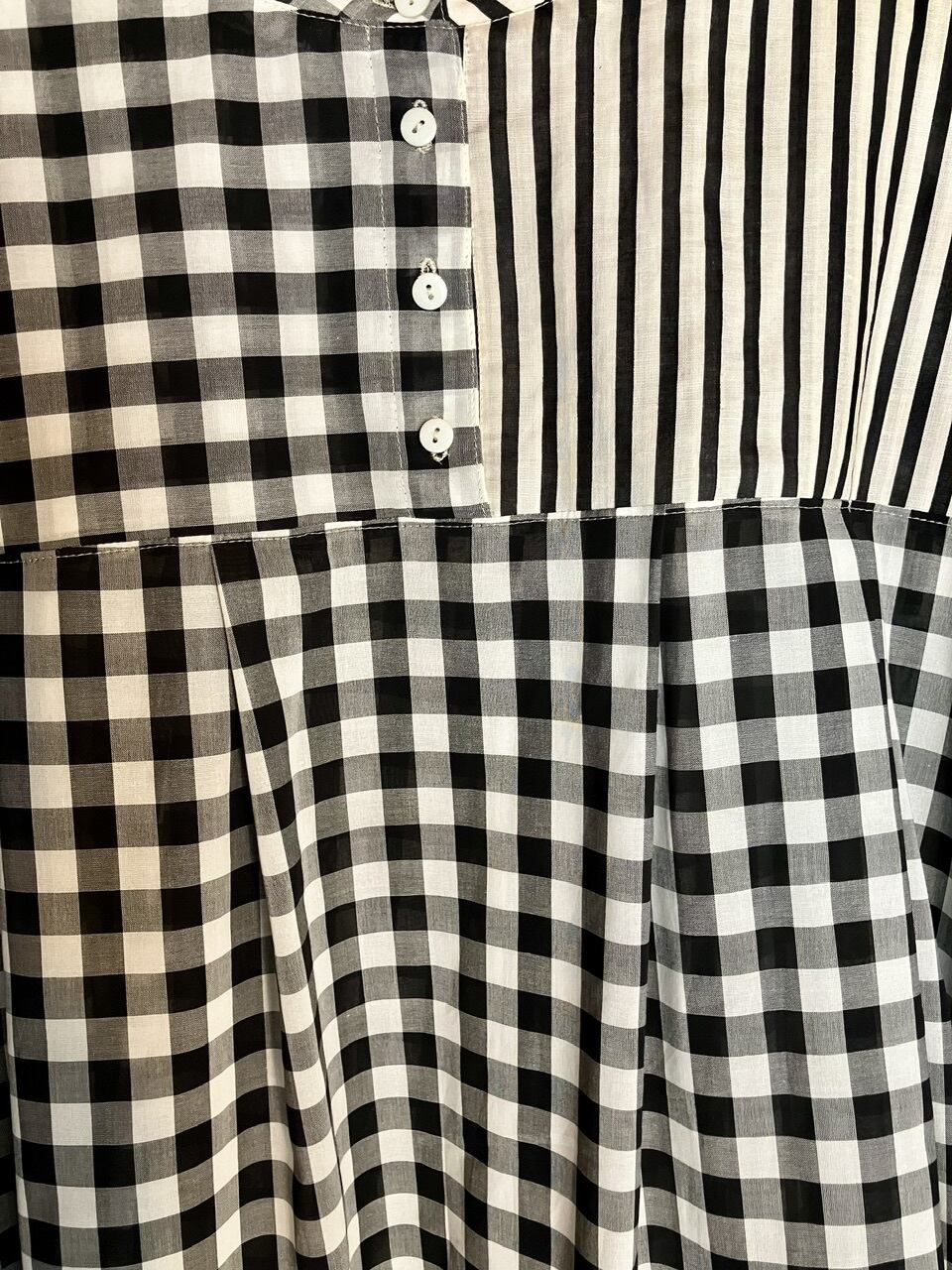 ・透け感のあるボイルチェックとストライプの配 色デザイン