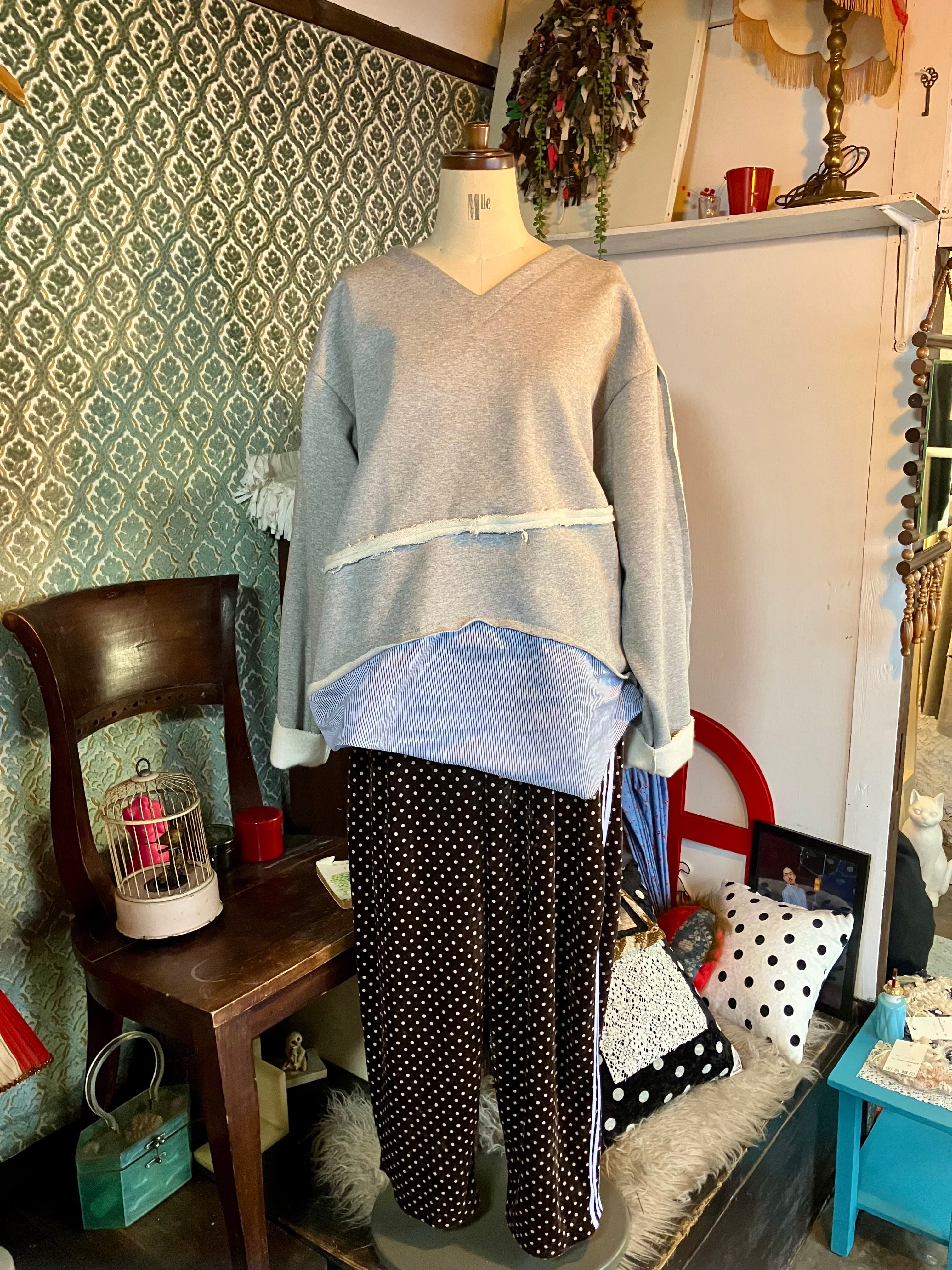 スウェット+オーガンジープルオーバー